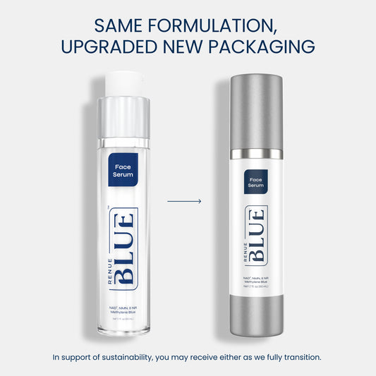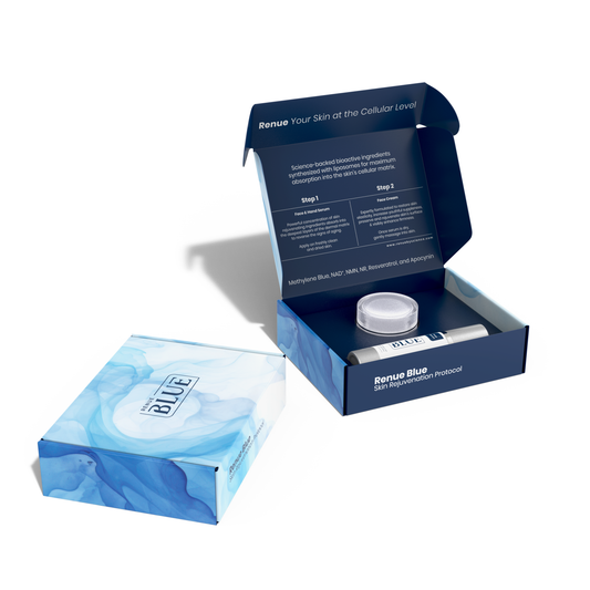 Aging and environmental stressors reduce NAD+ levels in skin cells, impairing mitochondrial function and regenerative capacity. Renue Blue’s clinically inspired formulations aim to restore NAD+ levels, optimizing cellular energy production for visibly healthier, more youthful skin.